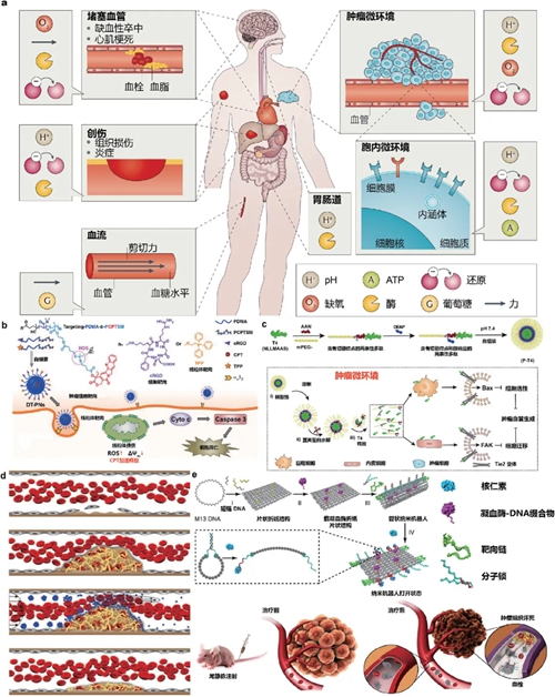 (a) 疾病微环境和生物体内的刺激响应要素[12];